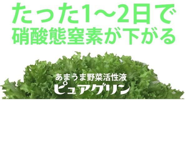 新着情報 2021年4月27日 NEW! オーガニックピュアブラウンのAmazonでの販売開始 2020年8月10日 植物性有機肥料オーガニックピュアブラウンのページが追加されました。 2015年12月4日 ピュアグリン〜Pure Green〜 ムービー紹介が追加されました。 2015年10月15日 第5回国際農業資材EXPOに出展致しました。 2015年3月5日 ピュアグリンの防虫方法のページが更新されました。 2014年11月6日 土を良くする枯草菌 のページが更新されました。 2 2014年11月1日 土を良くする枯草菌 のページが更新されました。 2014年8月31日 硝酸態窒素 低減剤ピュアグリンのページを更新しました。