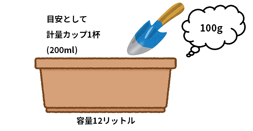 プランター1つに対して、本製品100gを土に入れてスコップ等でまんべんなく混ぜます。